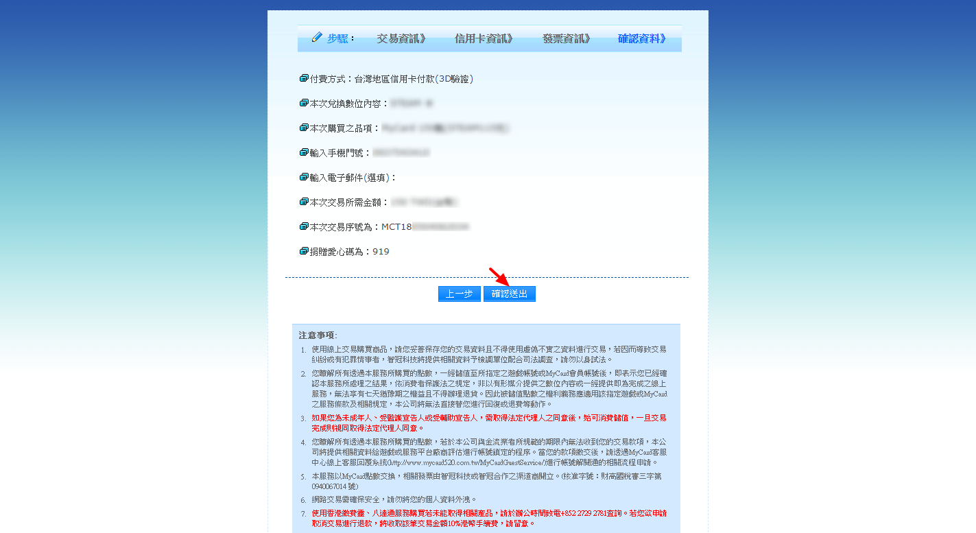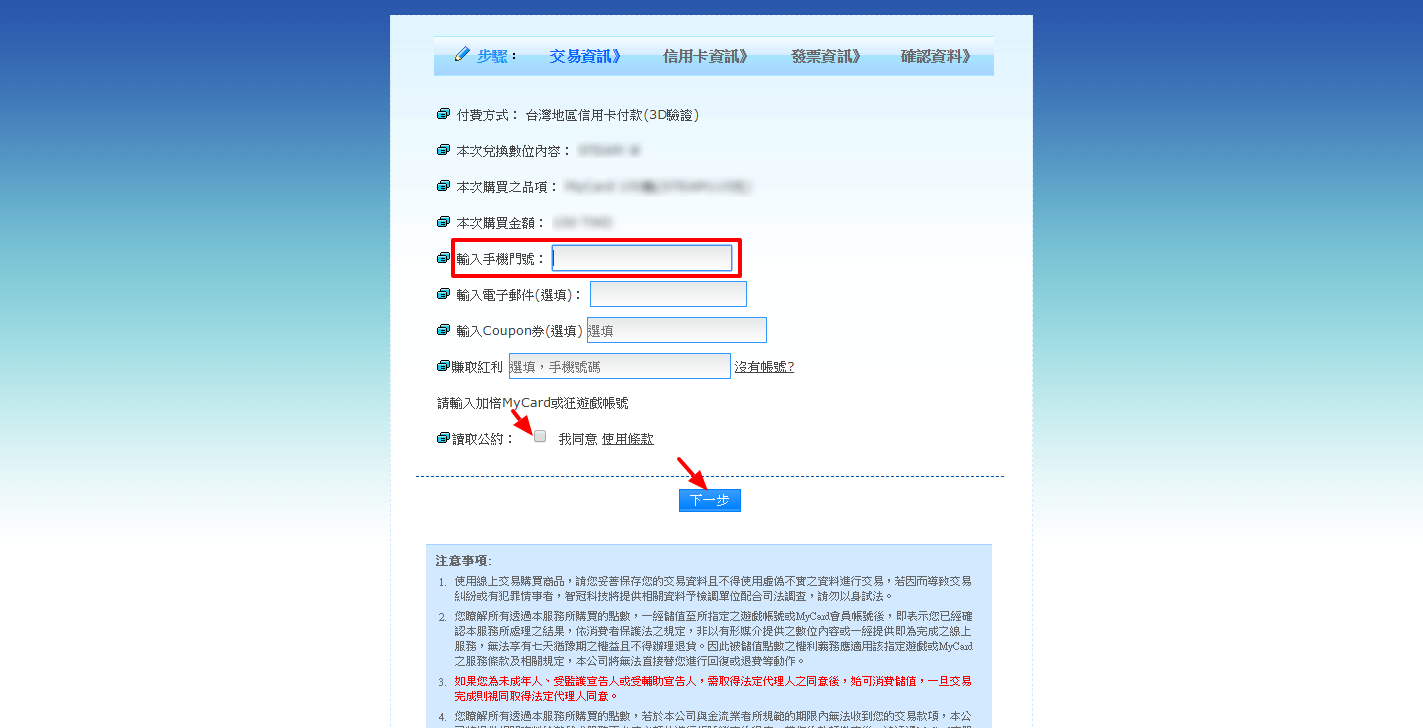 依需求填寫相關資料,閱讀、確認同意使用條款後勾選我同意