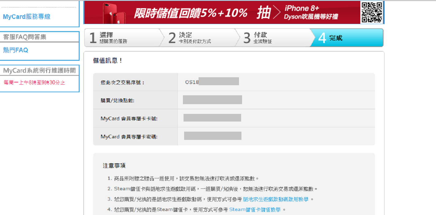 購買完成,將購買/兌換點數欄的序號抄下前往STEAM啟動遊戲
